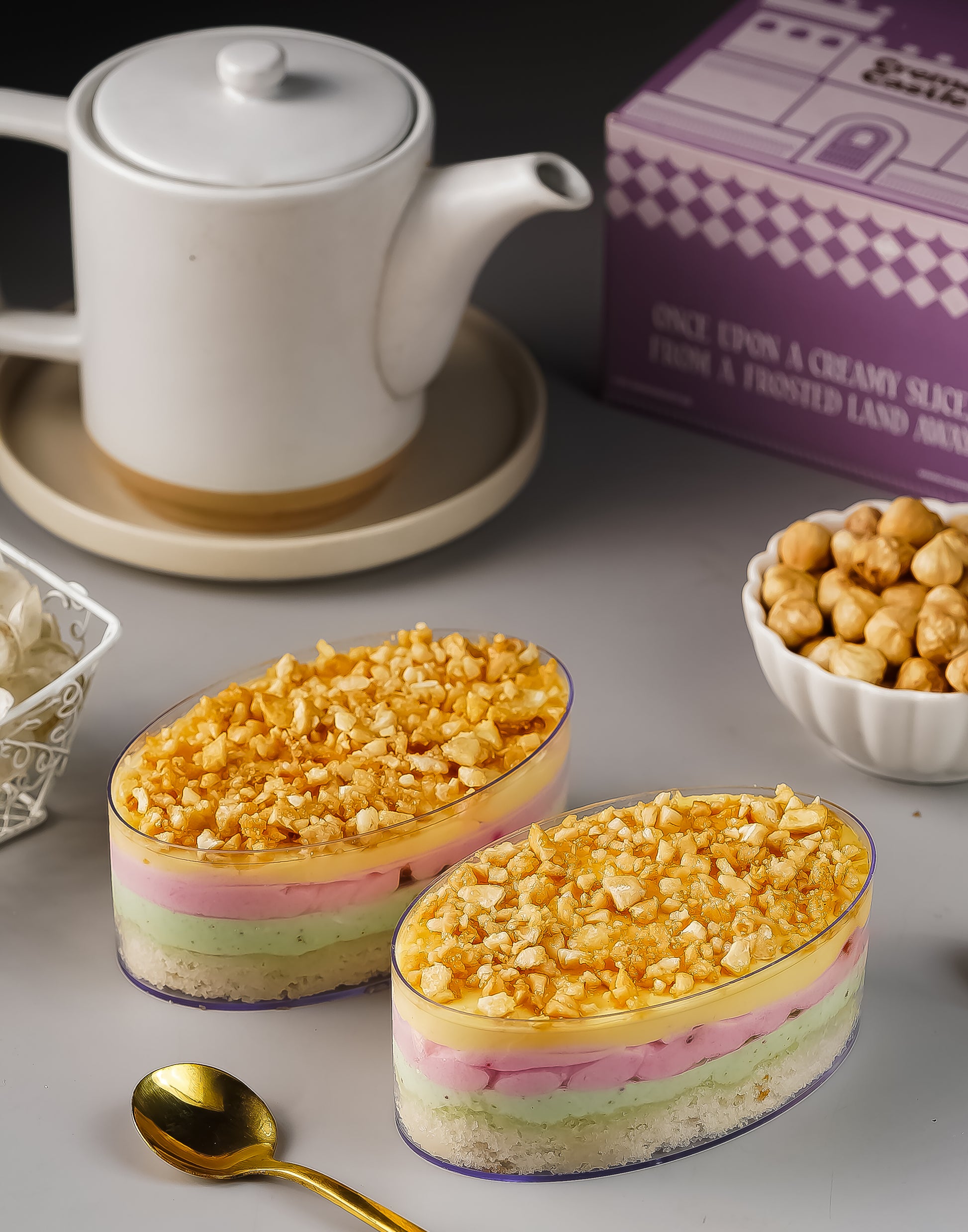 This indulgent tub layers strawberry, mango, and pistachio creams into a soft, dreamy mousse, topped with caramelised cashew crumble for crunch. One spoon, and you’re 10 again — chasing the ice cream cart on a hot summer day.